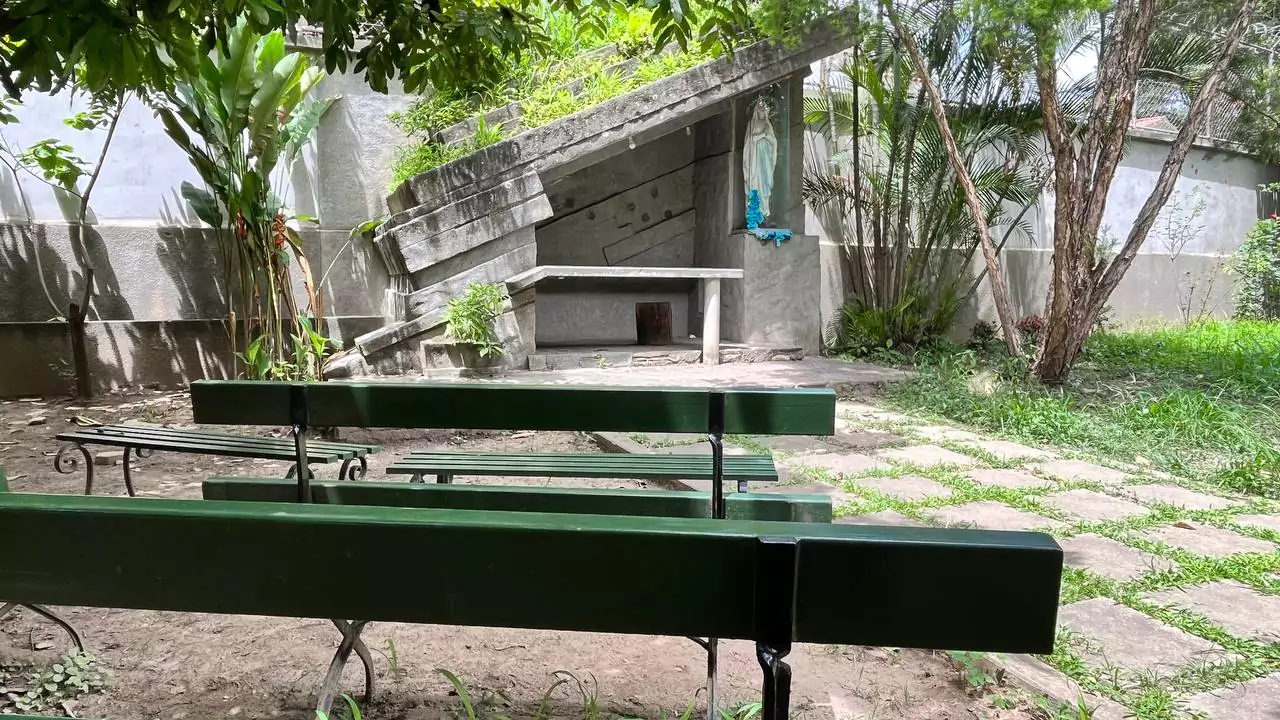 El jardín central rinde honor a nuestro patrono San José con la inscripción: “Ite ad Joseph” (Acudir a San José).