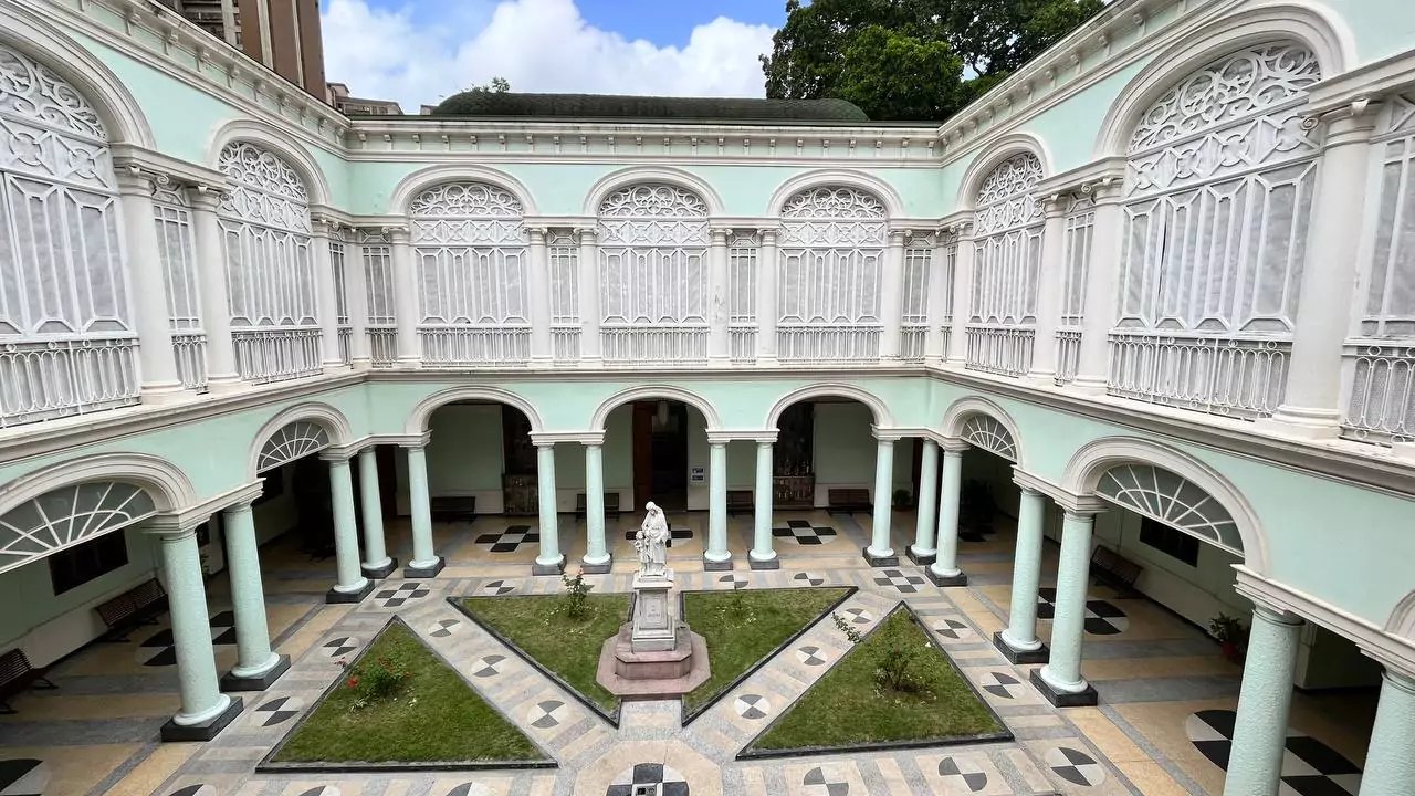 Y en el jardín de entrada San Luis Gonzaga (patrono de la juventud cristiana) y Santa Catalina de Siena