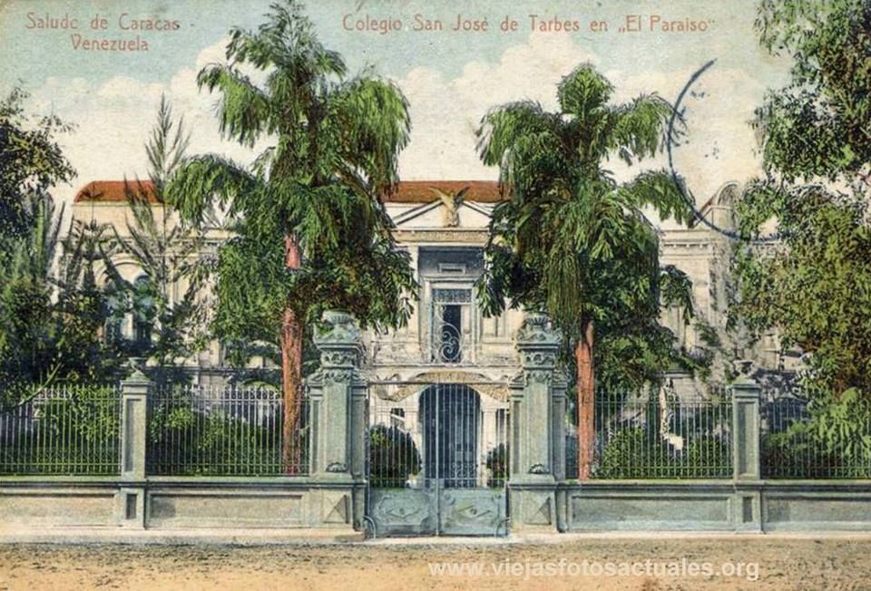 Es así como, por un contrato del 07 de enero de 1901, refrendado por el gobierno de los Presidentes Raimundo Andueza Palacio y Cipriano Castro, destinan el edificio de El Paraíso (que funcionaba como centro de exposiciones), para el establecimiento del primer Colegio de religiosas en Venezuela, bajo la dirección de las Hermanas de San José de Tarbes